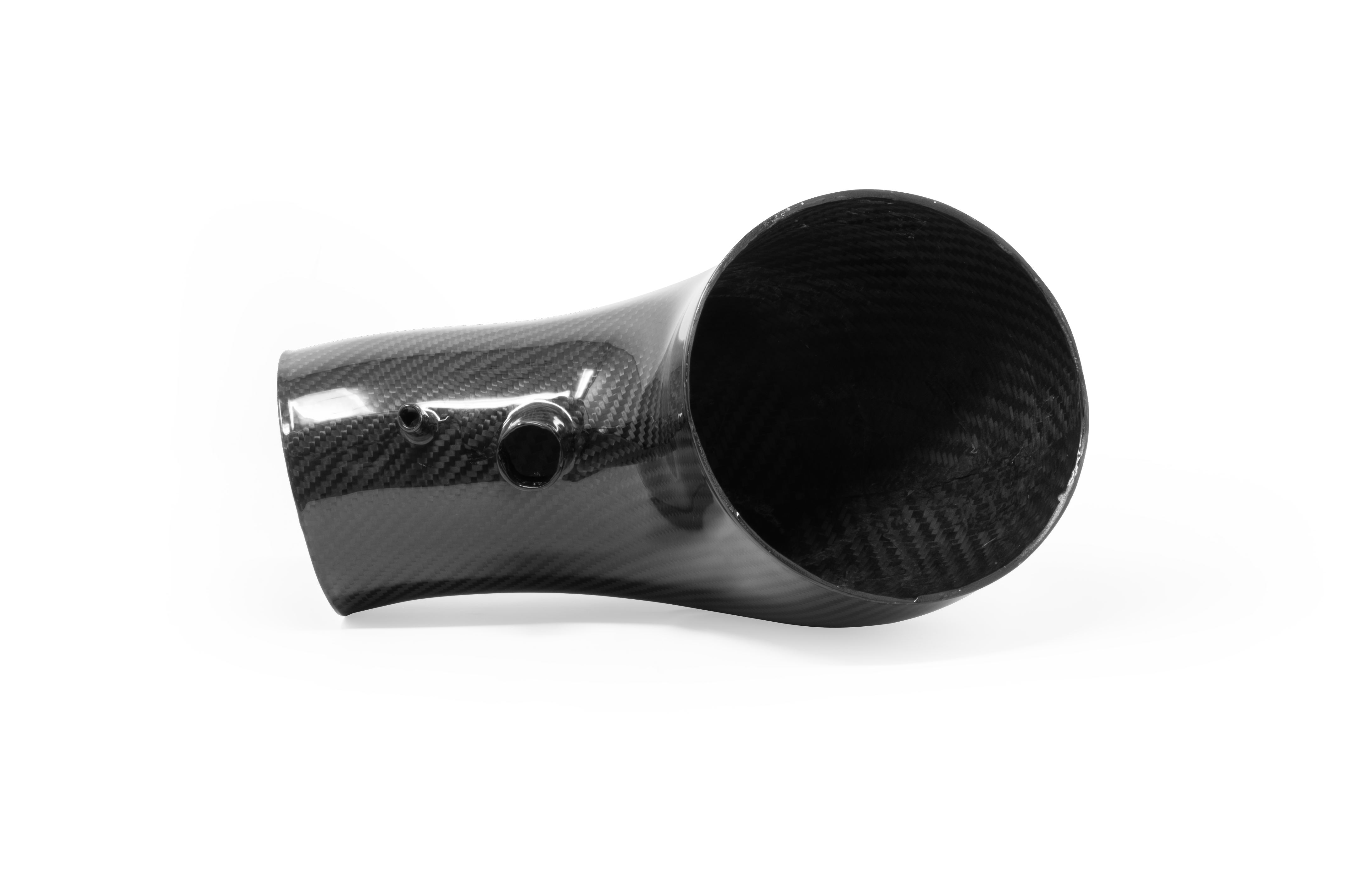 Unser massiver 9-Zoll-Baumwollfilter mit frontaler Öffnung wird an einem 6-Zoll-Kohlefaser Einlass angeschlossen, der nach und nach an das 4-Zoll Kohlefaser Rohr anschließt.