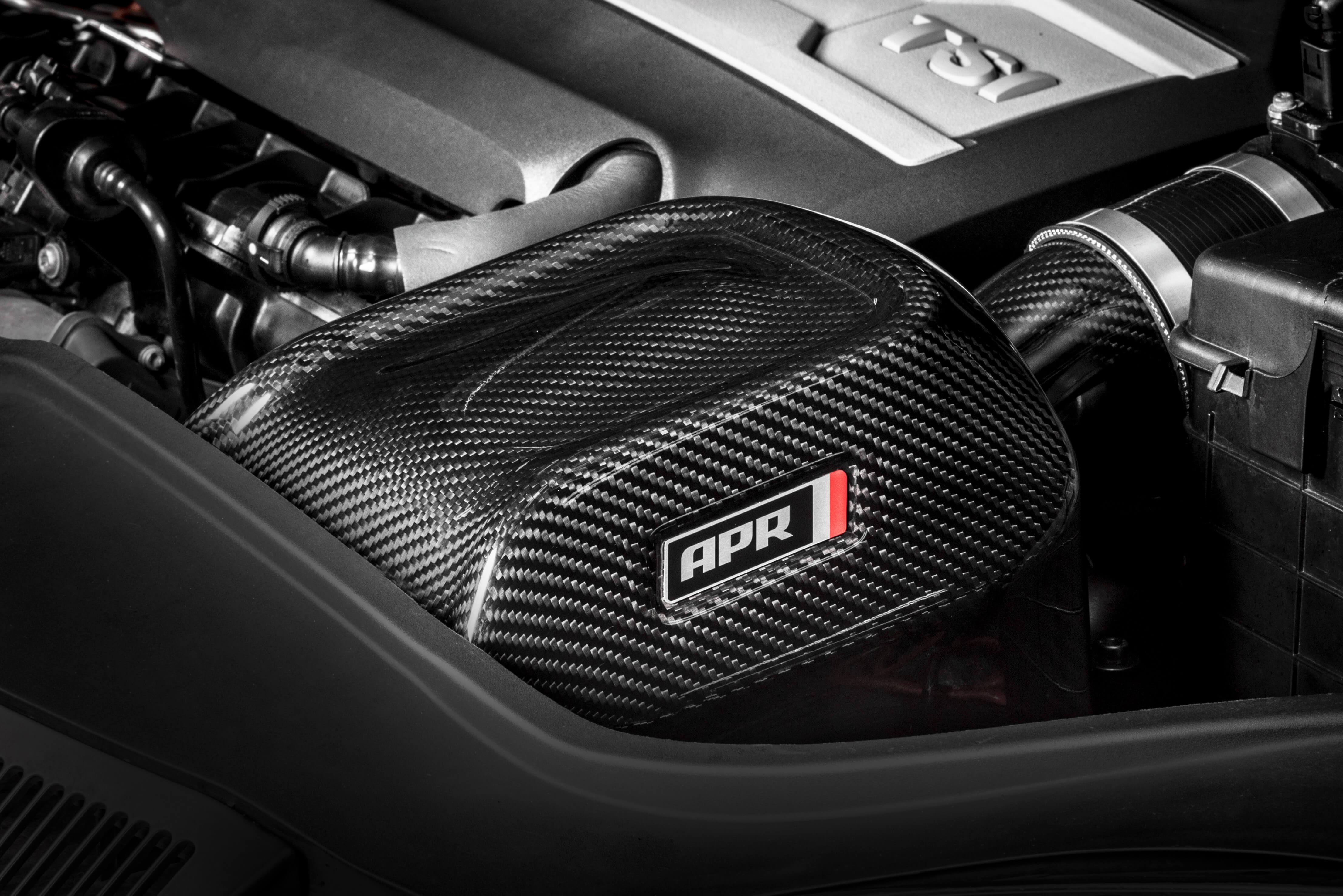 Das APR Carbon Fiber Intake System passt Plug and Play mit dem Original-Turbo-Inlet und verbessert dessen verhalten.