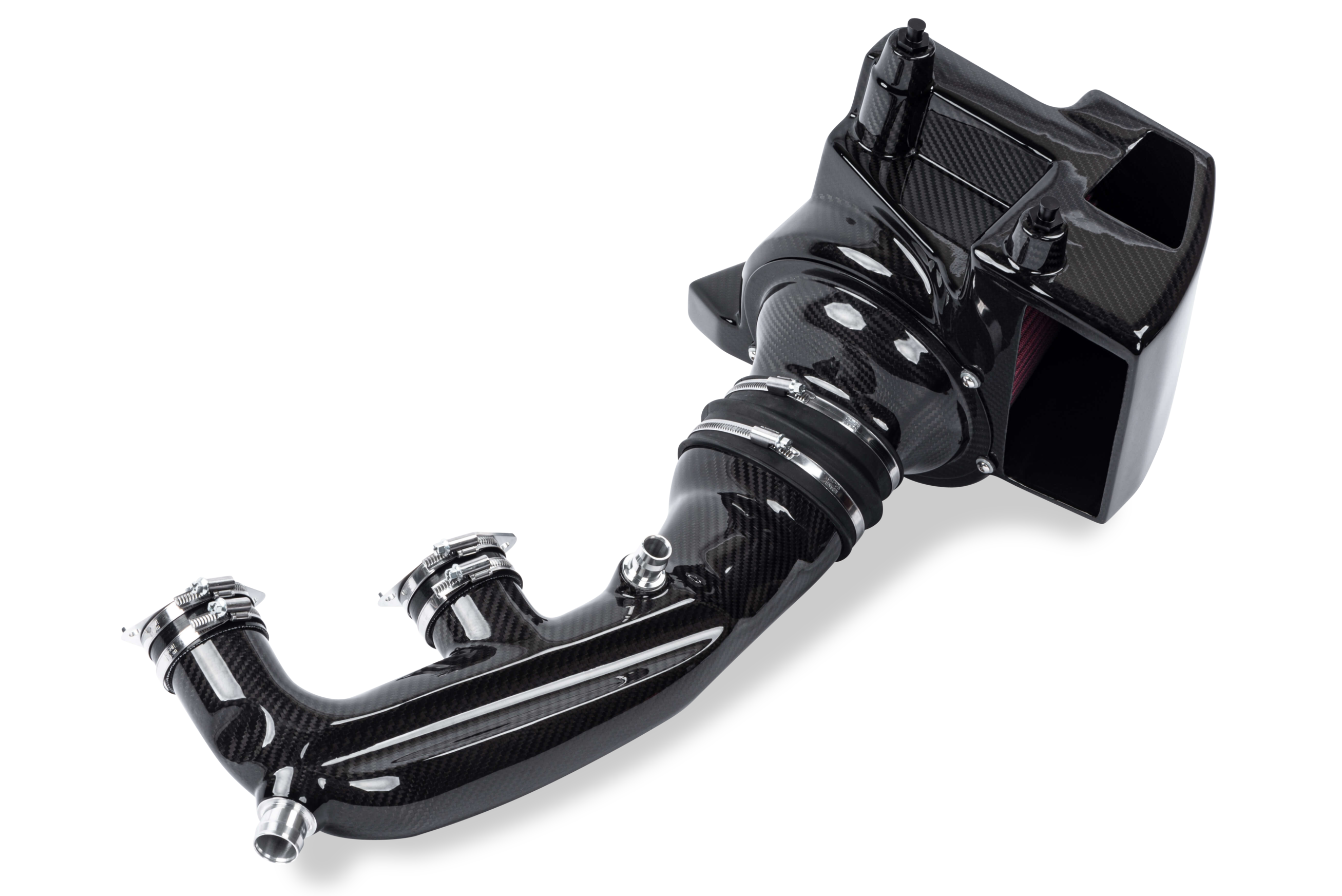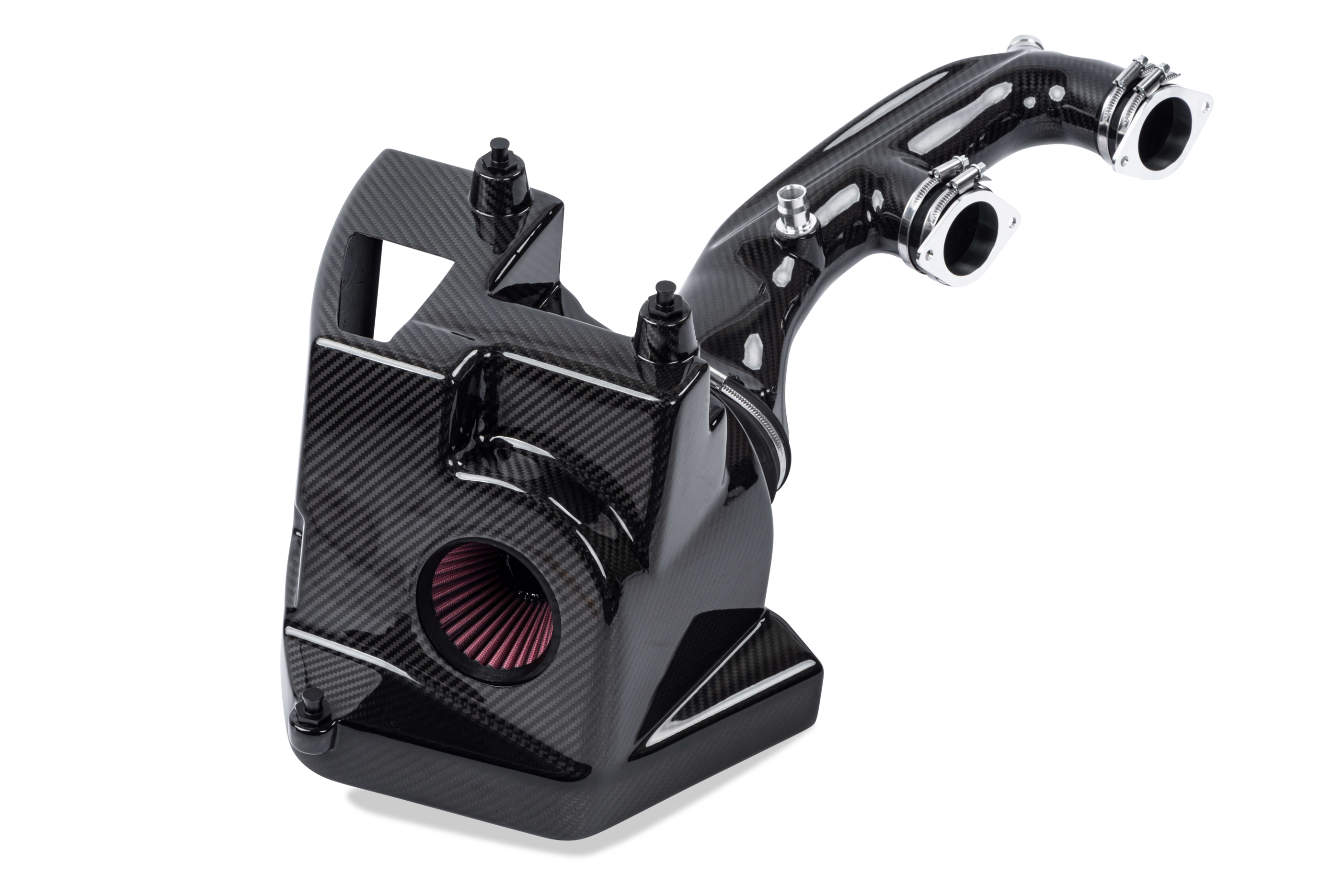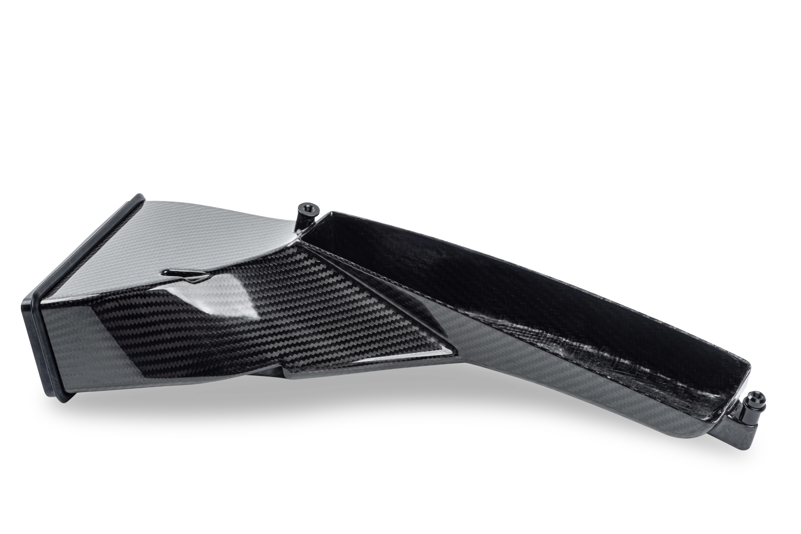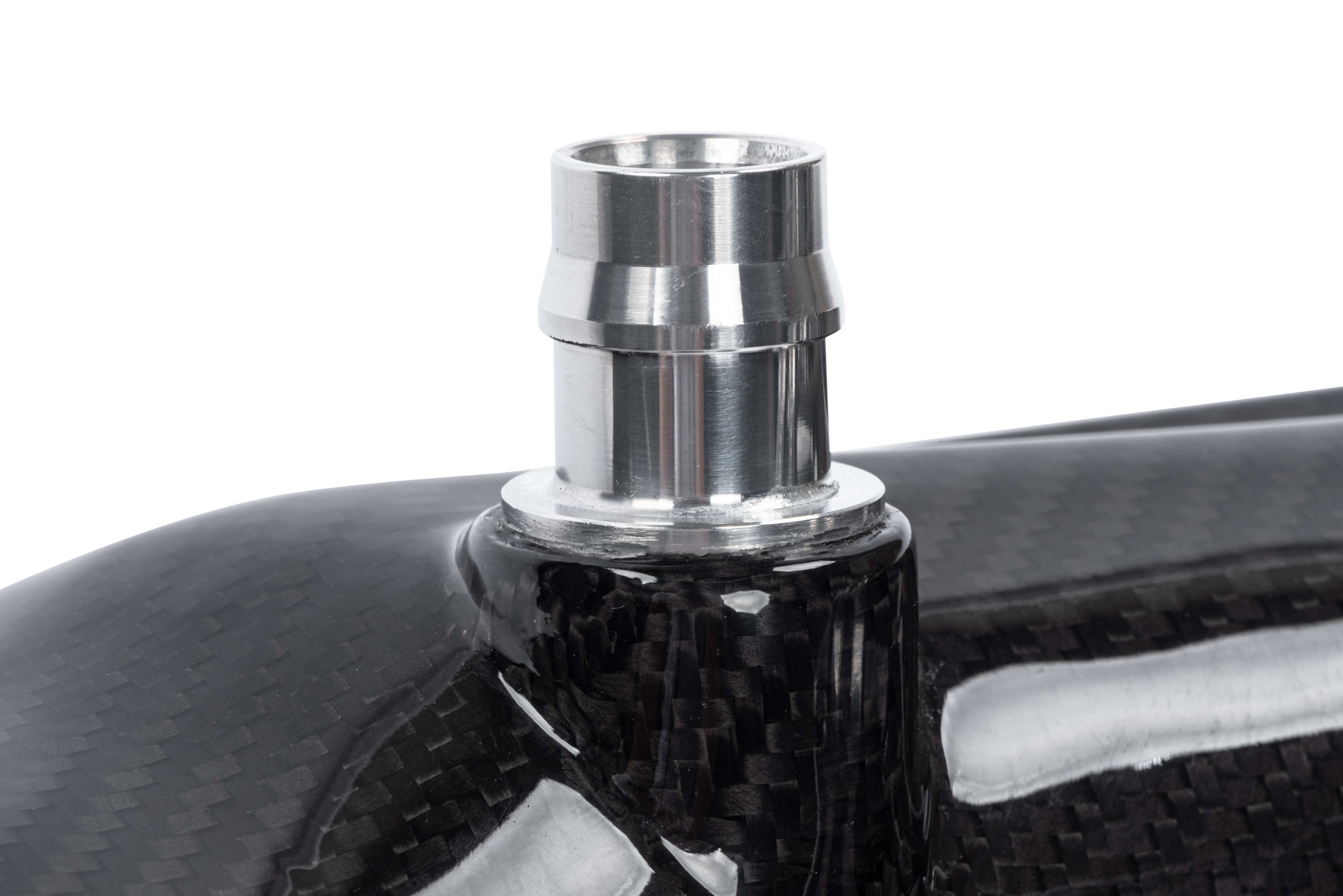 Unser Intake ist aus Kohlefaser gefertigt und sieht unter der Motorhaube absolut atemberaubend aus. Durch die Verwendung dieses Materials sind wir in der Lage, die Wandstärke der Rohre zu verkleinern und dadurch den Innendurchmesser zu erhöhen, was den Durchfluss und die Leistung natürlich weiter erhöht.