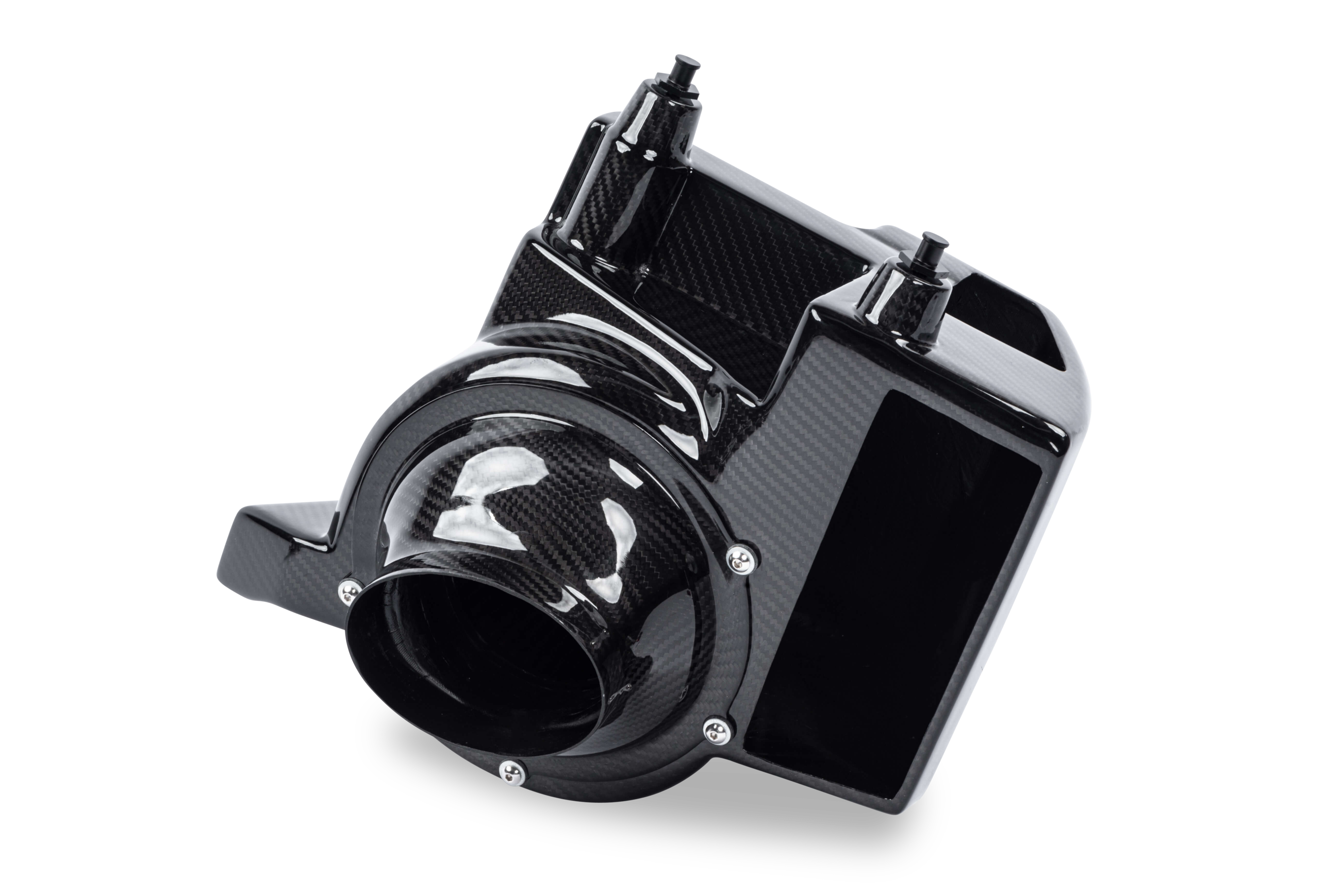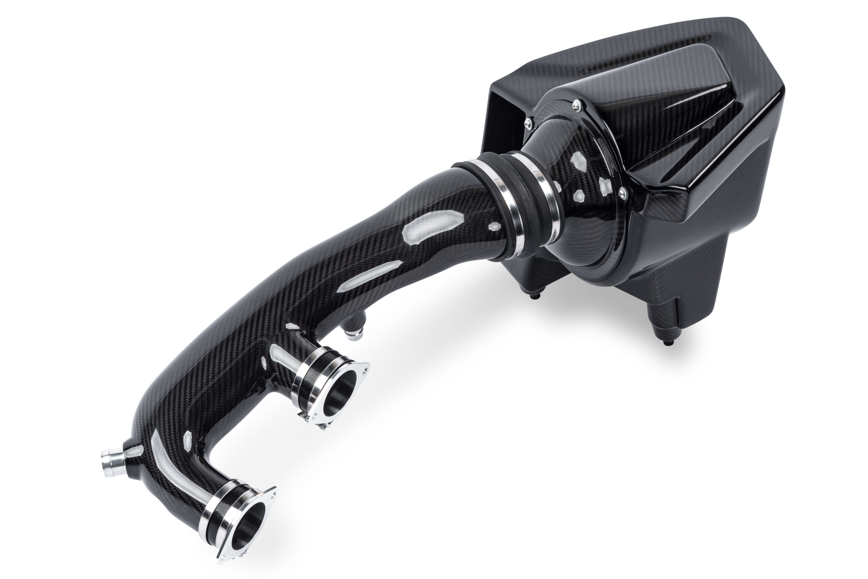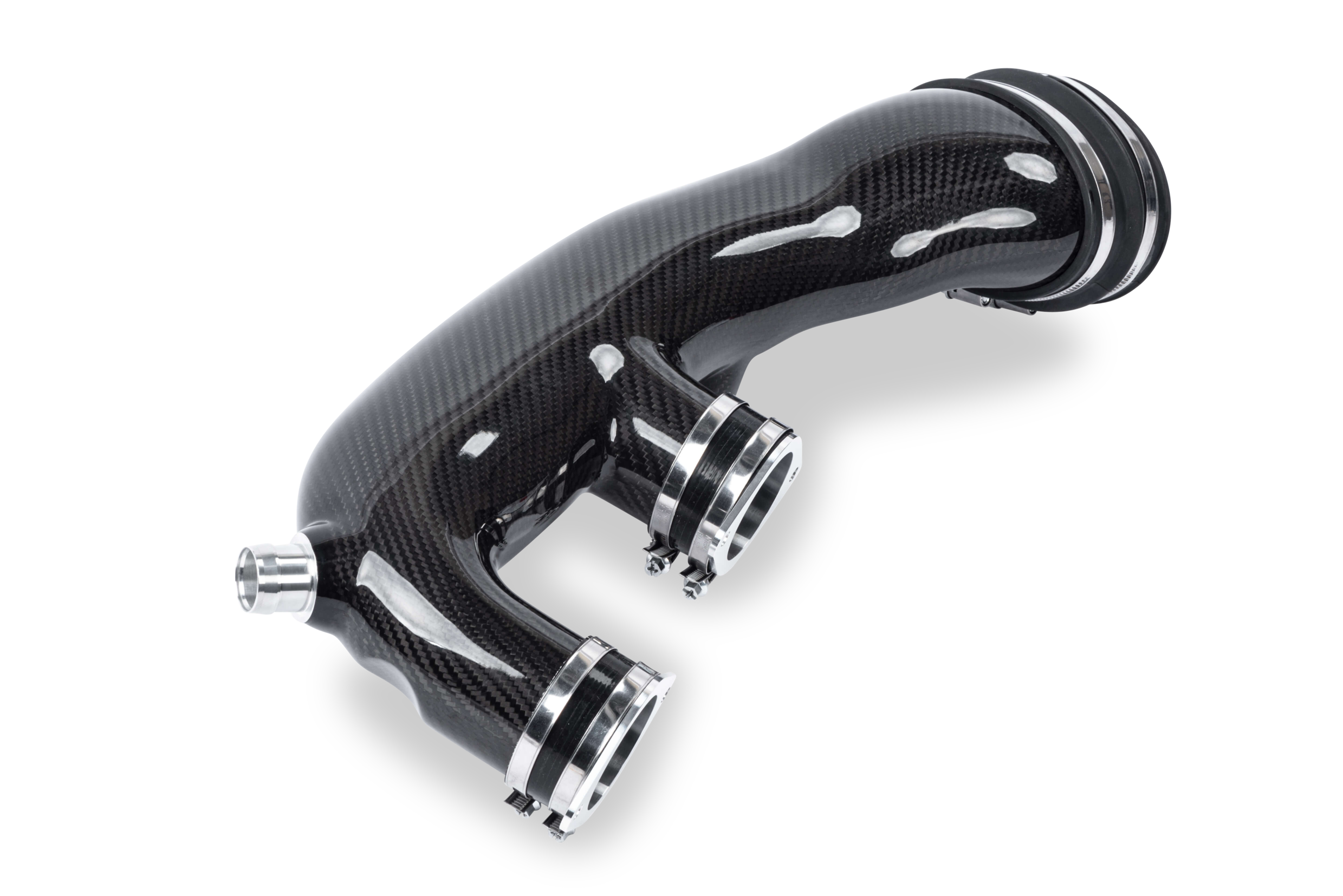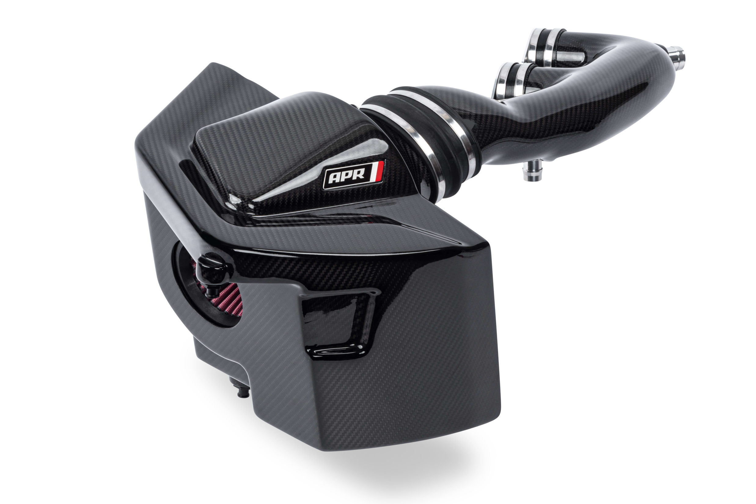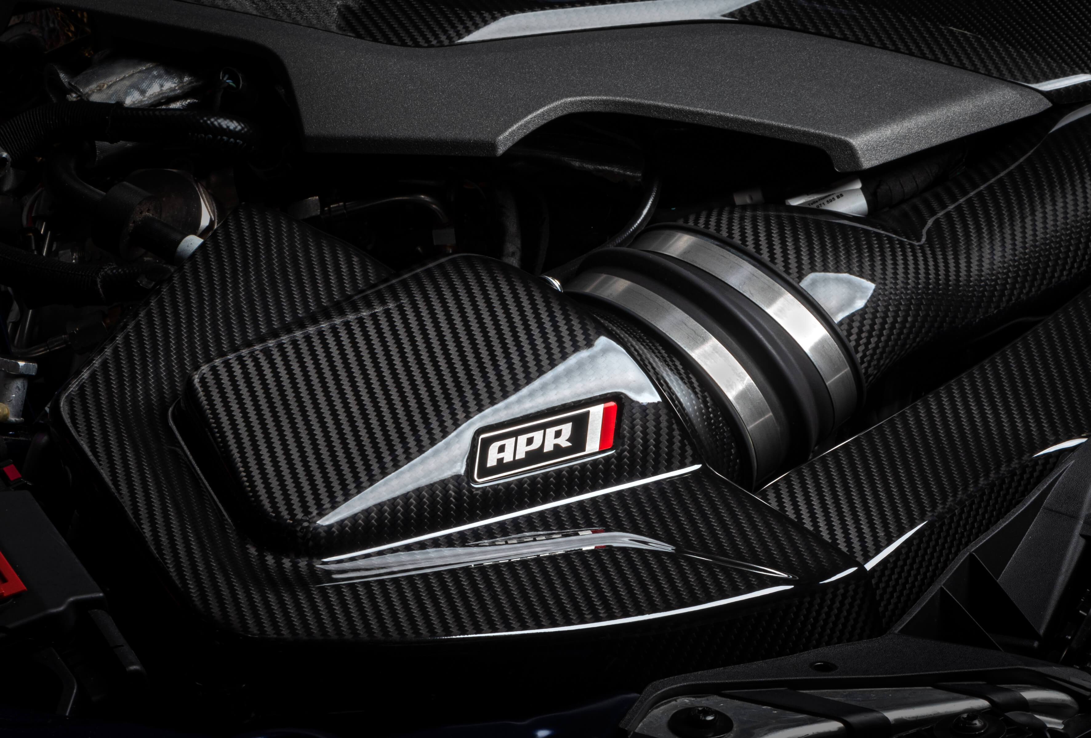 Unser Intake ist aus Kohlefaser gefertigt und sieht unter der Motorhaube absolut atemberaubend aus. Durch die Verwendung dieses Materials sind wir in der Lage, die Wandstärke der Rohre zu verkleinern und dadurch den Innendurchmesser zu erhöhen, was den Durchfluss und die Leistung natürlich weiter erhöht.