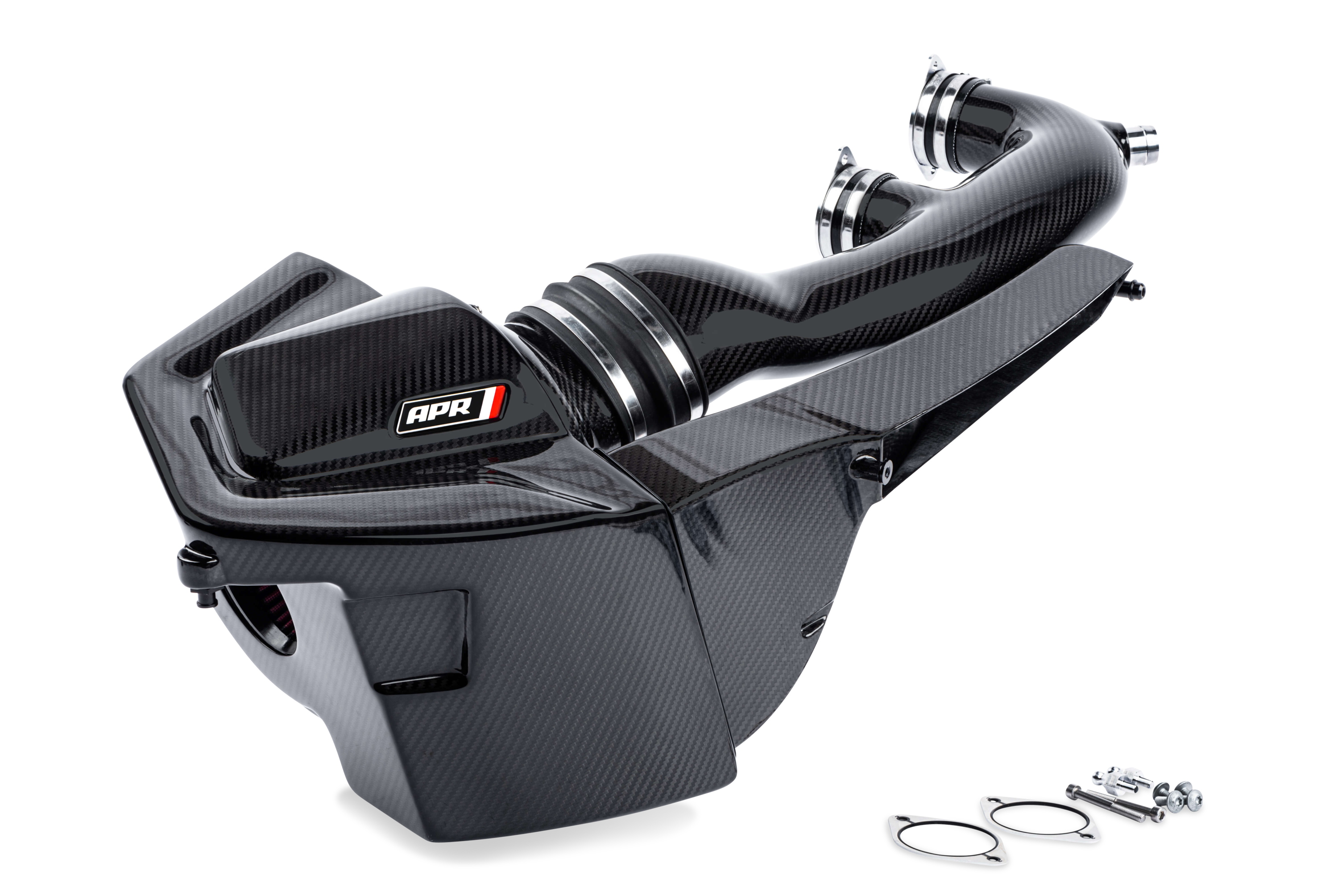 Unser System kommt im Komplettpaket. Es beinhaltet alle Ansaugkomponenten, von der Einlasshutze bis hin zu den Turbo Inlets. Dies ist extrem wichtig, da der Ersatz der Airbox allein nicht die wichtigsten Restriktionen am Serienteil eliminiert. Einfach ausgedrückt: Unser System strömt besser als serienmäßig, bringt mehr Leistung, belastet die Turbolader weniger und sieht im Motorraum einfach nur atemberaubend aus! Zu guter Letzt bringt das Intake auch noch einiges mehr an Sound mit.