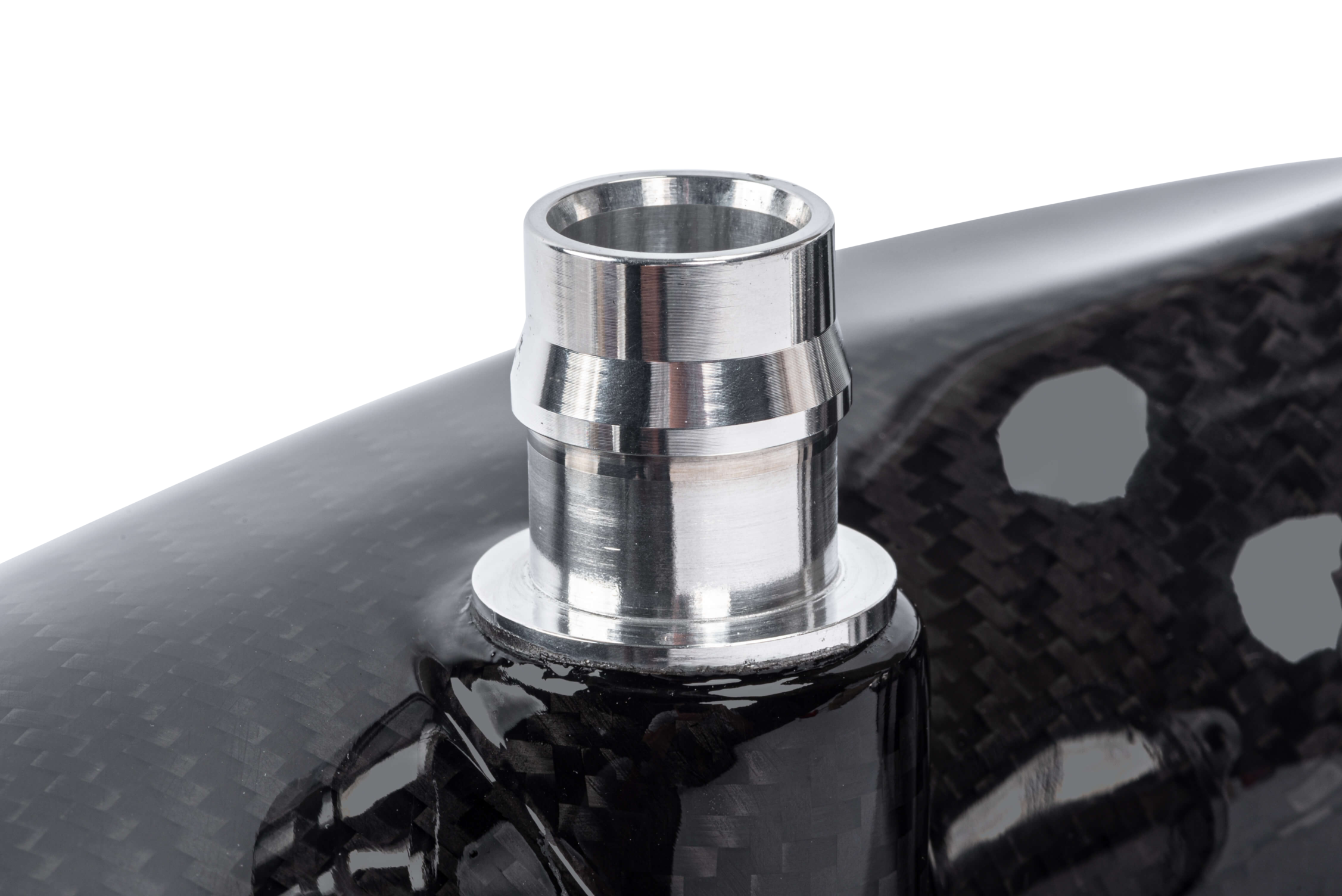 Durch die Verwendung dieses Materials sind wir in der Lage, die Wandstärke der Rohre zu verkleinern und dadurch den Innendurchmesser zu erhöhen, was den Durchfluss und die Leistung natürlich weiter erhöht. Ebenfalls ist mit Kohlefaser die Herstellung komplexer organischer Formen möglich, was die Arbeit in einem engen Motorraum deutlich erleichtert und trotzdem das beste Ergebnis liefert.