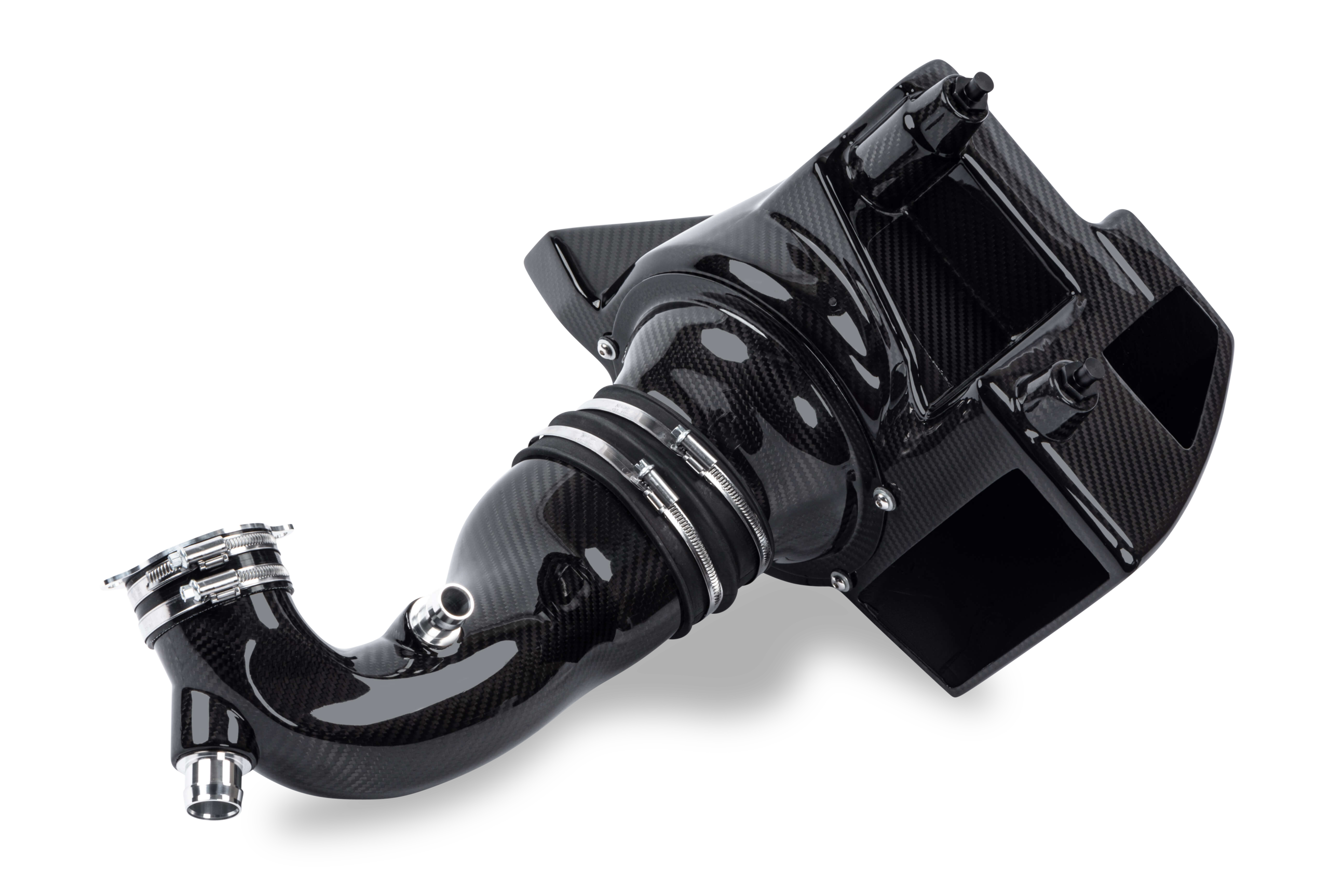 Unser System kommt im Komplettpaket. Es beinhaltet alle Ansaugkomponenten, von der Einlasshutze bis hin zu den Turbo Inlets. Dies ist extrem wichtig, da der Ersatz der Airbox allein nicht die wichtigsten Restriktionen am Serienteil eliminiert.