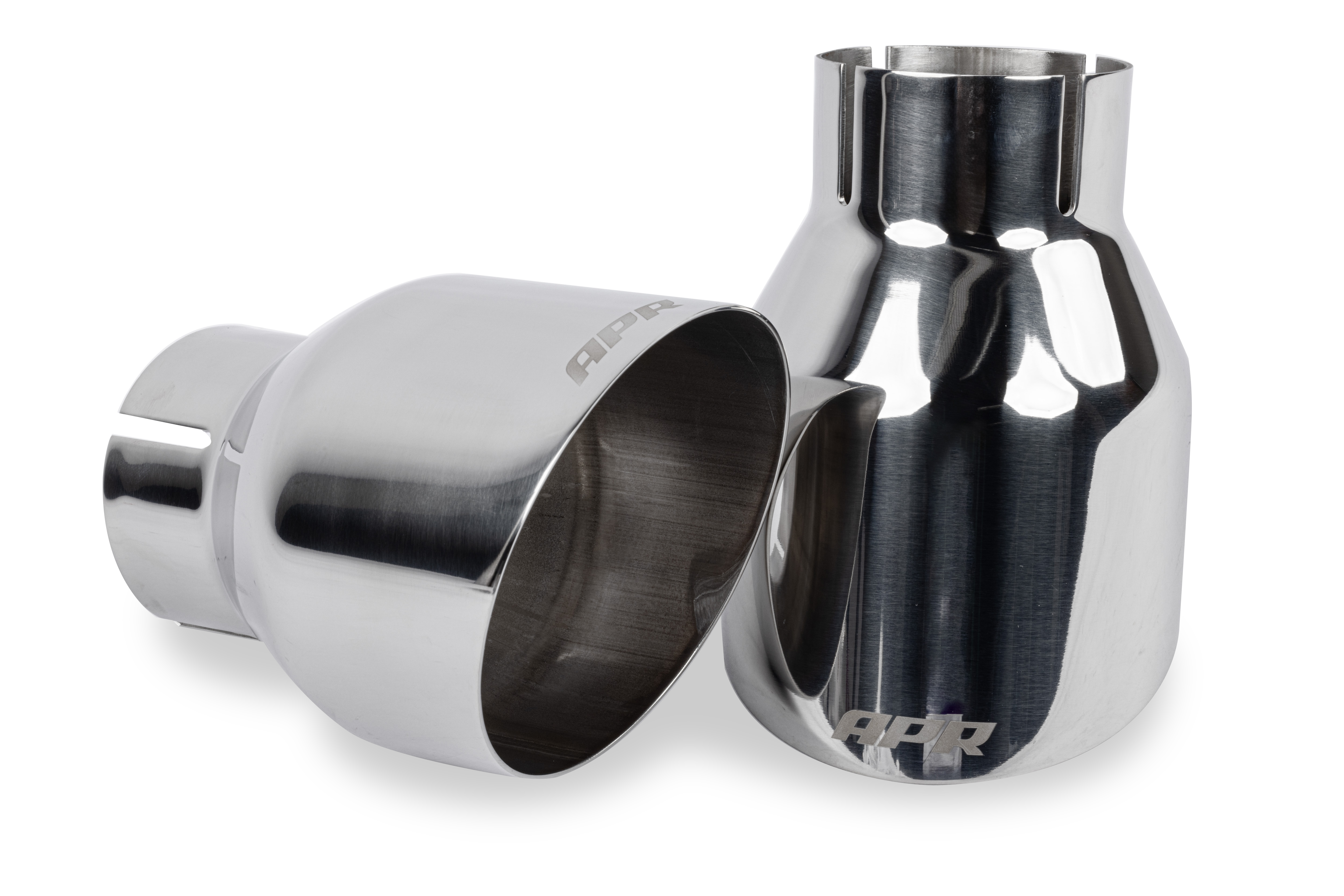 Die Serienanlage verwendet 2,56" (65mm) Rohre, die sich vor dem Eintritt in den Schalldämpfer auf 2,36" (60mm) reduzieren. Die Abgase teilen sich auf und verlassen den Schalldämpfer durch ein duales 2,36" (60mm) System, was sich aber direkt nochmals auf 2,17" (55mm) reduziert. Durch diese Verkleinerung verringert sich der Gesamtquerschnitt des Systems erheblich. Das APR-Mainpipe hat einen um bis zu 60% größeren Querschnitt als das Original. Das ganze wird abgerundet von 4" (102mm) Endrohrblenden die dem Fahrzeugheck ein sportliches Aussehen verleihen.