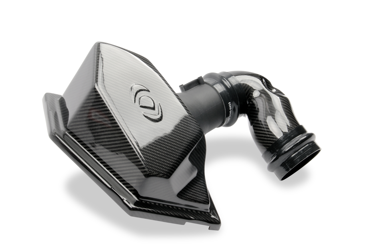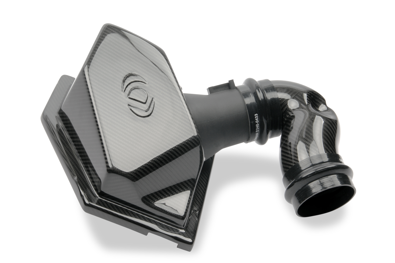 Durch den komplett aus Kohlefaser gefertigten Ansaugtrakt ist das Air Intake im Motorraum ein echter Hingucker.