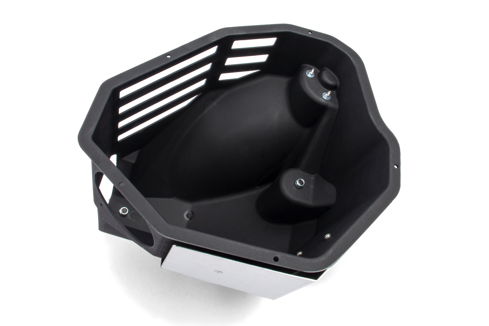 So wurde nach mehreren Simulationen und Erprobungen von Prototypenteilen ein sekundärer Open-Air Einlass geschaffen. Hierbei wurden mehrere Formen, Positionen und Größen der Öffnungen getestet, um sicherzustellen, dass der zusätzliche Ansaugstutzen keine unerwünschten Nebeneffekte verursacht. Die Ergebnisse zeigten, dass die gemusterten Öffnungen in der endgültigen Version der Box ein perfektes Gleichgewicht an zusätzlichem Volumen zur Unterstützung des werksseitigen Einlass bietet.