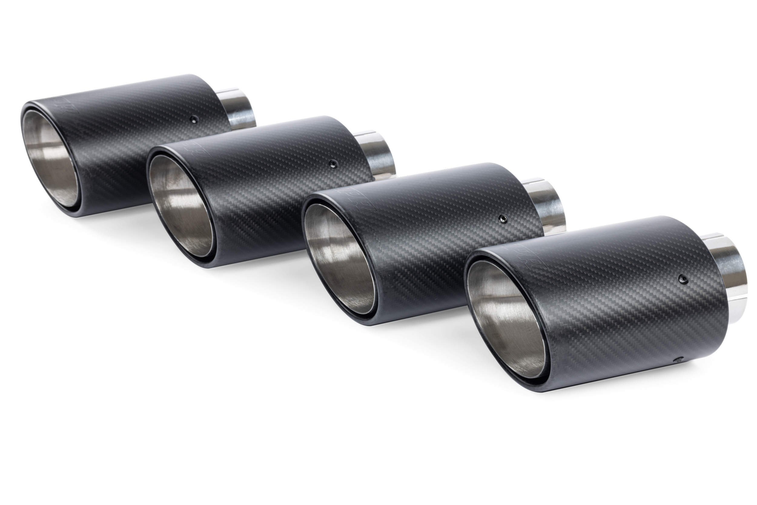 - High-End 4-fach Endrohre 5,2 x 3,9 Zoll (131 mm x 99 mm) in matt im Carbon-Design mit Edelstahleinlagen.